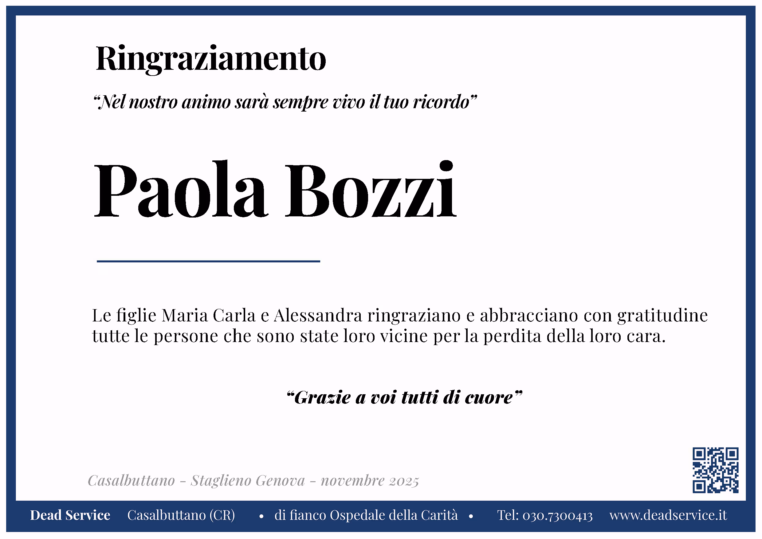 La Famiglia ringrazia per il vostro messaggio di cordoglio